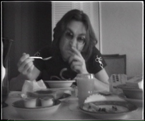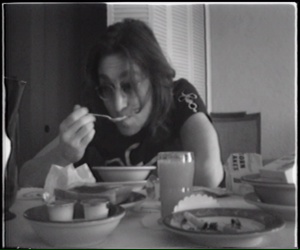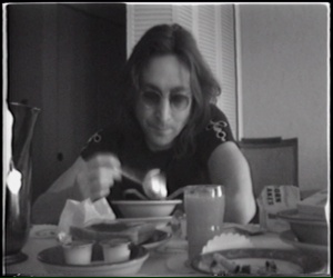 Notes: More black & white home movie of John & Yoko at their hotel in Cambridge having breakfast before traveling to The Old