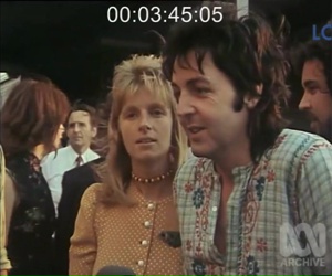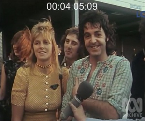 Notes: Paul & Linda arrive in Melbourne to a short interview.
