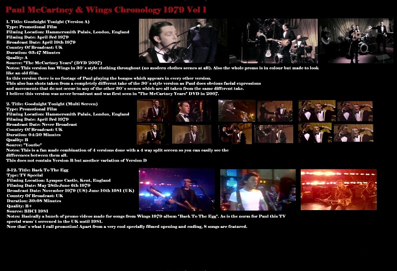 Paul McCartney & Wings Chronology 1979 Vol 1