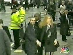 Notes: Ringo & Barbara were shown arriving for Linda McCartney`s memorial service in London. Ringo also acknowledged the fans waiting outside in the rain.
