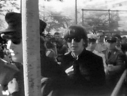 Notes: The Italian "TG2 News" filmed fans gathering for the concert and the stage preparations and finally film of the Beatles arriving at the venue.