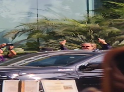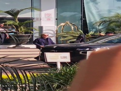 Notes: Paul leaving his hotel for his soundcheck in Lima.