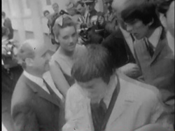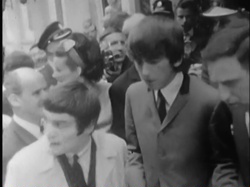 Notes: This is unknown tv news footage of the boys leaving Doelen Hotel for their concert at Cafe Treslong.
