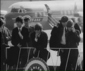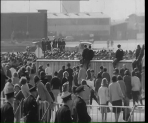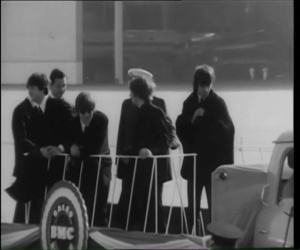 Notes: This British Pathe newsreel is mostly the Beatles on the flat bed truck circling the airport.