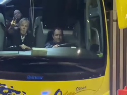 Notes: Paul on his tour bus waving to fans.