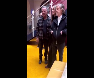 Notes: Paul & Bruce inside Liverpool Institute Of Performing Arts walking around & meeting fans.