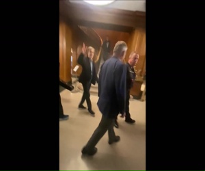 Notes: Paul leaving his hotel on his way to Casey`s Center.